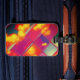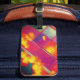 Den här bagageetiketten har en konstgjord utformning på dem.