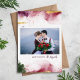 Modern anpassningsbar tryckte ut julfotokort med en enkel DIY-mall för anpassning. Den här cirkeldesignen har en abstrakt stäng stänk med bakgrundsfärg i burgnyans, grönt och guld. Lägg till ditt familjefoto, hälsning, namn och året. Använda verktyg för att redigera typsnitt och färg. Baksidan har utrymme för att lägga till fler foton och text.
