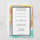 Modern bröllop med artsy gouache vattenfärger i gult, orange, rosa, blått mot vit bakgrund. Anpassa med Namn i Bride och Groom i elegant silver och bröllop i svart text i dubblans geometriska ram i ljusblå och blek röd orange. Tillbaka har vattenfärgsscen med vilken du kan anpassa med Monogrammed Initial med Kärlek skriven under. Anpassa för ditt speciella bröllop. Tillbaka till inbjudan har ord KÄRLEK och Monogrammed Initial av gruppens efternamn. Originalteckning och Design © TamiraZDesigns.
