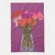 Arty Lycklig färgblommor i Vas +eget namn Kökshandduk