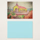 En skiss och målning av Alto Vista-chapel i Aruba med Karibiska havet och olika kaktusar, sten och ömtåliga shruber.