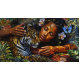 "Arumáya" Jaguars Bloom - Kvinnor i Amazonas. När hon sover bredvid sin jaguar vårdnadshavare, deras sinnen sammanflätade, förkroppsligar hon den ömtåliga skönheten hos en blomma som närs av vilden, och hennes själ blommar i harmoni med skogens våldsamma beskyddare.