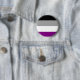 Förse med märke med den asexual flagga på den, som valt av olika asexual gemenskaper. Svarten är för asexuals, är grå färg för demisexualsna och grå färg-esset, är vit för sexualsna (mestadels bundsförvanter men också som delen av spectrumen), och lilan är för gemenskapen.