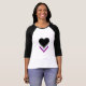 Dam 3/4 Sleeve Raglan T-Shirt med hjärtan i färg av asexualitet. Svart, grått, vit och lila, rand pride flagga, regnbåge kärlek design