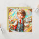Cute young road cross monitor firar Ashers födelsedag. Hälsning på kortet är "Grattis på födelsedagen Asher". På baksidan av kortet finns en liten version av framsidan bild och det finns gott om utrymme för skriva av ett meddelande. Tillverkad med hjälp av AI Bing.