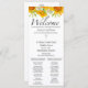Katolskt Bröllopsprogram med massa. Denna elegant är den katolska bröllop-ceremonin med ett massprogramkort dubbla. Den har en bukett med gult solrosblommor med vattenfärg och ett enkelt kristet kor på framsidan tillsammans med dina detaljer skrivna i ett klassiskt serieteckensnitt och kalligrafiskt skript för chic.