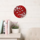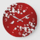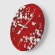 Den här söt-klockan har en vit och svart blommar av körsbär gren och söta fjärilar på en ruby-röd färgad-bakgrund.