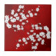 Asiatisk blomster vit körsbärsblomma röd kakelplatta