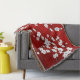 Asiatisk blomsterrik vit körsbärsblomma röd filt