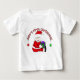 Asiatisk baby, första julklapp, T-shirt och andra helgdag artiklar med asiatisk baby i Santa kostym, med strumplock och text i candy cane.