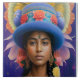 Asiatisk prinsessa med stor blå hatt kakelplatta