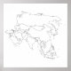 Asiens Karta-kontur Poster