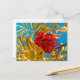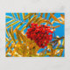 Rött kluster av askbär mot rönnträds gula blad och blå himmel. Höstsäsong.