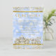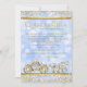 Prinsessa Quinceanera-inbjudan med vacker gulddiamant-häst och vagn på en guldbakgrund med glitter och diamantgnistrande Askungen-blå bokeh. Denna vackra sagoprinsessa Quinceanera-inbjudan kan enkelt anpassas för ditt evenemang genom att helt enkelt lägga till dina uppgifter i den typsnittsstil och formulering du väljer. Detta är en tryckt design utan riktiga diamanter, glitter etc.