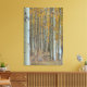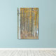 En tät grova grova aspen fyller ram, och deras släta, vita bark kontrasterar kraftigt med den pulserande gult löv som fortfarande håller fast vid grenar. Träd står högt och slappt och skapar djup och perspektiv. Marken är täckt i en lagrar av fallna löv och torrgräs, vilket tillför en viss värme till scenen.