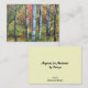 Vita aspen-trunkar står på ett dramatiskt sätt ut framför en fullt av vackra höstfärger av gult, orange, rött och grönt på detta artisthandelskort.