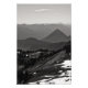 Ett svart och vitt landskapsfoto av rullande backe och berg så långt öga kunde se. Raderna träd här och där. Och några lappar av snö finns kvar på sommartiden i tidigt. Upphovsrätt ©2023 Kimberly J Tilley. www.zazzle.com/store/developingnature