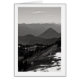 Ett svart och vitt landskapsfoto av rullande backe och berg så långt öga kunde se. Raderna träd här och där. Och några lappar av snö finns kvar på sommartiden i tidigt. Upphovsrätt ©2023 Kimberly J Tilley. www.zazzle.com/store/developingnature