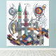Denna digitala konstverk, med titeln "Astral Pilot", är en komplex geometrisk komposition som är starkt influerad av El Lissitzkys konstruktivistiska visioner och hans "Prouns". Den visar en vertikal sammansättning av arkitektoniska former som kombinerar metalliska texturer, marmorytor och livfulla glaselement. Vassa spiror och sammankopplade balkar skapar en känsla av strukturell djup, medan flytande skäror och cirkulära skivor tillför dynamisk rörelse. Farbpaletten balanserar industriella gråtoner med djärva accenter i rött, blått och guld. Kristallina kluster och lysande ädelstenar är integrerade i tornen, vilket antyder en sammansmältning av teknologi och mystik. Runinskrifter och kryptiska symboler är ingraverade på ytorna, vilket förstärker det "