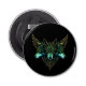 "Den här mystiska och invecklade utformningen har tre varger som är sammankopplade i en central form, med stiliserat vingar från sidorna. I teckningen ingår flytande linjer och glödande accenter i skuggor av grönt, blått och guld, som skapar en eterisk och annan världslig känsla. Utformningen väcker en känsla av andlig förmyndarskap och energi. Denna mångsidiga design skulle kunna användas för produkter som syftar till en mystisk, fantasirik eller konstnärlig estetik. Föreställ dig det på kläder, andlig-teckningar, unik hemdekan eller tillbehör som förmedlar en känsla av magi och skydd."