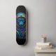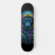 Skateboard illustration av en apa med hörlurar i stil, svart ljus, tillverkad av AI