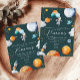 This whimsical space invitation was inspired by a dreamy mix of floating planets, watercolor rockets, and a cheerful astronaut holding galaxy balloons. Perfect for celebrating a first trip around the sun, it brings a playful, out-of-this-world vibe to your child’s birthday party.