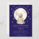 Blast off to a cosmic celebration with this charming astronaut-themed invitation! Featuring a sweet watercolor illustration of a young astronaut gazing at the moon, surrounded by twinkling stars, this design is perfect for a second birthday party. The deep navy blue background evokes the wonder of outer space, making it an out-of-this-world choice for your little one's special day. Customize with your party details to invite guests on an unforgettable journey to celebrate two years of adventure.