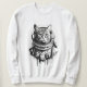 Astronaut Cat Bläck Art Lång Ärmad Tröja