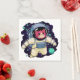 En katt som är klädd i en rymdesuit flyter genom en färglös galaxi fylld med små planeter och stjärnor. Dess nyfikna uttryck antyder en viskartad färd genom rymden.