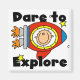 En stick figur astronaut i hans rymdskepp sprider sig till okända områden. Texten lyder "Dare to Explore" på astronaut T-shirts, mugg, kort, klistermärken, tote bags, magneter och annan perfekt för redskap för alla som kärlek stick figurer och rymden!