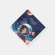 Need birthday party ideas for your boy? This spectacular photo birthday party personalized napkin for boys with an astronaut and space theme, featuring an illustration of an astronaut in deep space with a photo template on the visor, floating among planets, is just the ticket. Celebrate your budding astronaut with this planets and deep space theme that will make him happy, if he is crazy about all things planets, rockets, space and astronaut suits.