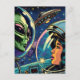 Astronaut från kvinnor möter utomjordisk Alien Vykort