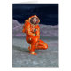 3D-rendering av en manlig astronaut på en främmande planet och blå nattbakgrund himlar