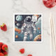 Astronaut i Outerspace Birthday Napkin med en nod till NASA:s första landning i måne. "Houston, vi har en födelsedag!" generöst innehåll