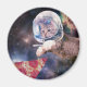 Astronaut-kattjakt på ett pizzasuccat magnet