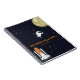 Söt yttre rymden tecknad astronaut & rymdfärja på väg till Månen i en guld falsk glitter stjärnig svart kosmos. Rymdålderns font typografi text kan enkelt anpassas med ditt barns eget namn & telefonnummer. En super cool skola eller hemma anteckningsbok för alla blivande upptäckare av galaxens mysterier.