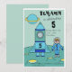 En personlig födelsedagsinbjudan perfekt för ditt barns födelsedagsfirande! Denna inbjudan har en astronaut och hans raket på månen eller någon annan planet. Pojken i en blå astronautdräkt och hans blå raket med åldern på. Astronautpojken gör detta till en bra inbjudan för en pojkes födelsedag och hans vänner.