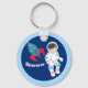 En coola rymden astronaut-nyckelkedja för ett barn. Har ett fantastisk-barn astronaut bredvid en raketfrakt i galaxen.