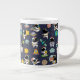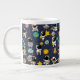 En bild av astronauturan, Rymden: astronaut-ballong som planär, en raketstjärna, stjärnor, UFO-ikon, rymdsatellitikon, mättnad planet, rymdskepp m.fl. På Oxford Blue (marinblå) bakgrund.