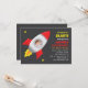 Bjud in barnen på en rymdäventyr med denna rymd-inbjudan till fest! Denna rymd-tema inbjudan till födelsedagsfest kommer med ett rött, vitt och grått rymdskepp som lyfter ut i rymden med en söt astronautpojke som vinkar hej från cockpiten! Dekorerad med stjärnor och prickar över en mörkgrå bakgrund med en orange planet med cirklar och yttre ring på baksidan. Anpassa enkelt med festdetaljer med hjälp av de medföljande textplattorna.