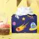 Ett livfullt rymdtema med astronaut, rymdvarelser, asteroider och diverse rymdobjekt.