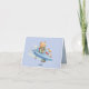 This fun thank you note features a rocket blasting off into the sky. A little teddy bear is peaking out the window of the rocketship. Inside the thank you card is a message that is fully customizable should you want to change it. The card also has planets, another teddy bear rocket, a satellite dish and even a fire ball streaking through the sky. Inside is a cute message thanking your guests for their gifts, presence and well wishes. There's another teddy bear astronaut in a rocket coming in for a landing and a satellite dish on the inside of the card. There's even a teddy bear and space vehicle on the back of the card!