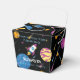 Astronaut Traveling Galaxy Birthday Favor Box den här designen med galaxer, färgstarka planeter, rymdskepp. perfekt för barn som rymden i kärlek.