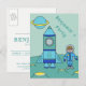 Ett vykort för rymdinbjudan till ett barns födelsedag party firande. Ett kostsamt och personifierbart födelsedagskort inbjudan. Alla data skrivs på baksidan av vykortet. Den här inbjudan har en astronaut och hans raketfrakt på Måne eller vilken planet som helst. Pojken i en blå astronaut kostym och hans blå raketer med åldernumret på den är i rymden. Pojken astronaut gör den här underbaren som party inbjudan för en pojkes födelsedag och hans vänner.