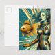 astronaut woman and gold fish vykort