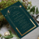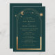 Mystical Grönt Guld Sol Star Måne Astronomy Space Wedations har sol, måne och stjärnor med guld ram på gröntens bakgrund. Inuti finns din inbjudan till personligt bröllp. Anpassa genom att redigera texten i textrutorna. Designad för dig ©Evco Studio www.zazzle.com/store/evcostudio