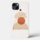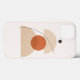 This asymmetric minimalist geometric abstract art features clean, simple shapes in subtle earthy tones on a textured off-white background. A beige semicircle, a terracotta circle, a sand-colored arch, and a small black circle overlap in a harmonious modern composition, connected by a gently curving black line. Perfect for modern wall prints, notebooks, phone cases, tote bags, and other home decor items, this elegant design adds a contemporary touch to any space.