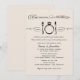 Denna klassiska och förfinade inbjudan till förlovningsmiddag presenterar frasen "Eat, Drink, and Be Married" i elegant svart på varm elfenbensvit bakgrund, tillsammans med en grafisk illustration av en gaffel, förlovningsring och kniv i en dukning. Subtila rullande accenter och en lekfullt rimmande versrad ger en tidlös, festlig känsla. Den dubbla layouten rymmer både detaljer om repetitionen och middagen. Alla namn, datum och evenemangsinformation är fullt redigerbara.