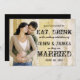 Ät, drick och bli gift, foto, rustic bröllopsinbjudan av Elke Clarke©. Exempelbild endast. Ersätt med ditt eget foto. Lägg till din bröllopsinbjudan text på baksidan av kortet. Använd promterna eller välj "anpassa den" för fler redigeringsalternativ. Förlovningsfoto bröllopsinbjudan med ett lantligt bröllopstema med gammal typografi och handskrivna teckensnitt för ett roligt, vintage bröllopstema.
