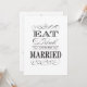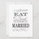 Klassisk svart-vit vintage-stil. Texten på framsidan lyder "Ät, drick och var gift". Passar för bröllopsinbjudningar, mottagningar osv. Anpassa enkelt texten på baksidan.